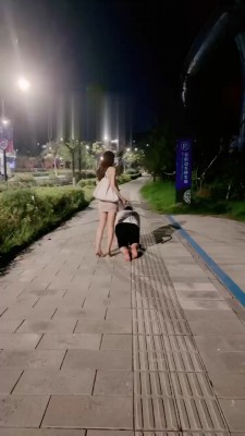 微希不紧不慢地牵着奴进房间,调教清理鞋子、钻胯等。
